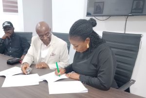 While Elder Goodluck Ubochi signed for the Abia State Government, Mrs Orieji Okwara and Project Manager Nnamdi Ogbuagu signed for Blue Giraffe Development Limited.