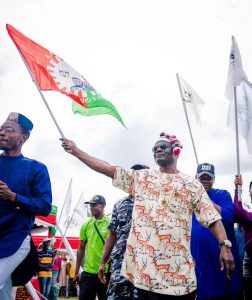 The former deputy governor went round the field to greet the mammoth crowd that came to witness his official entry into the Labour Party.